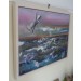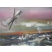 Description: An original oil painting by Rowena Comrie framed in a cream wooden tray frame. The painting forms part of her aviation series which pursues a contemporary twist on the 18th century idea of the sublime.