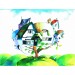 Description: An original watercolour by Ann Priddy framed in a natural wooden frame. The village evolved in the tree - a safe haven.