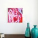 Description: An original acrylic painting by Carolynne Coulson on a 1.5" deep box canvas coated with a protective layer of UV varnish. The painting is in very bright colours of pinks, reds and oranges.