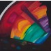 Description: An original oil painting by Penelope Cake on a 1.5” deep box canvas. The painting conveys an abstract rainbow painting from the "child within", our inner psyche,