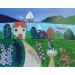 Description: An original acrylic painting by Artist Casimira Mostyn on a 2” deep box canvas. The painting conveys a naive feel to it with colourful quirky trees and flowers