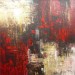 A large abstract in reds and creams on chunky canvas. Vibrant colour with lovely texture. An artwork to make a great focal point in a spacious room. Sides painted black, ready to hang, no need for a frame.