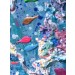 This colourful painting depicts fish swimming in and around a reef in Aqua Blue waters. The work is highly textured and would make a great addition to any room. Please note - photos showing this artwork in a room setting are for display purposes only and the painting is not to scale in this/these pictures.