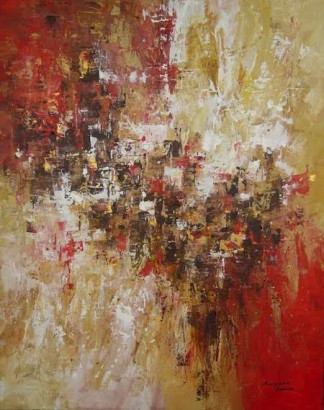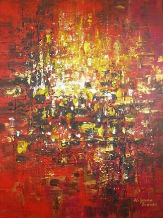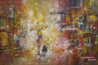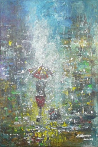 Kalpana Soanes spent her childhood sketching pictures in the sand on the shores of East Africa. However, this simple existence was short-lived. Her flamboyant style had begun to draw crowds. Naturally, she took commissions. Not for money, just cake, or simply, compliments. She developed her skills every single day, experimented with new techniques and frequently sketched pictures in public. Spurred on by the interest it generated, Kalpana started selling her artwork at a very young age. She liaised with local businesses and soon her work was scattered all over the world. Next, she enjoyed an exciting career in Information Technology, worked and lived in different countries in Europe and abroad for several years. However, something was not right. She missed the good old days. Eventually, her inner artist broke free of corporate serfdom. Now based in a quaint British village, Kalpana is a full-time artist. Her work involves acrylics and oils on canvas, often accentuated with mixed media. Kalpana is self-taught.