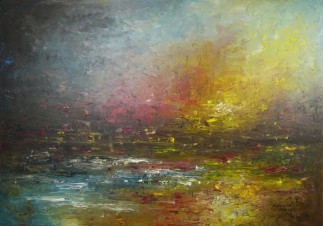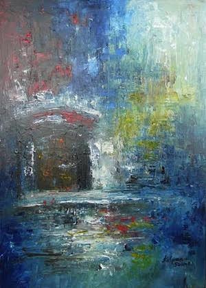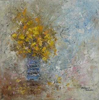 Kalpana Soanes spent her childhood sketching pictures in the sand on the shores of East Africa. However, this simple existence was short-lived. Her flamboyant style had begun to draw crowds. Naturally, she took commissions. Not for money, just cake, or simply, compliments. She developed her skills every single day, experimented with new techniques and frequently sketched pictures in public. Spurred on by the interest it generated, Kalpana started selling her artwork at a very young age. She liaised with local businesses and soon her work was scattered all over the world. Next, she enjoyed an exciting career in Information Technology, worked and lived in different countries in Europe and abroad for several years. However, something was not right. She missed the good old days. Eventually, her inner artist broke free of corporate serfdom. Now based in a quaint British village, Kalpana is a full-time artist. Her work involves acrylics and oils on canvas, often accentuated with mixed media. Kalpana is self-taught.