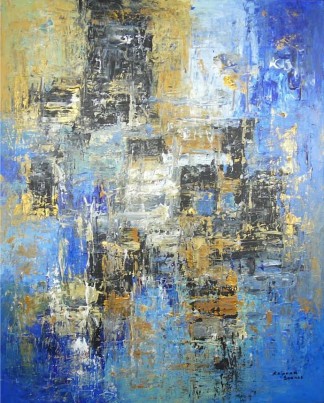 Kalpana Soanes spent her childhood sketching pictures in the sand on the shores of East Africa. However, this simple existence was short-lived. Her flamboyant style had begun to draw crowds. Naturally, she took commissions. Not for money, just cake, or simply, compliments. She developed her skills every single day, experimented with new techniques and frequently sketched pictures in public. Spurred on by the interest it generated, Kalpana started selling her artwork at a very young age. She liaised with local businesses and soon her work was scattered all over the world. Next, she enjoyed an exciting career in Information Technology, worked and lived in different countries in Europe and abroad for several years. However, something was not right. She missed the good old days. Eventually, her inner artist broke free of corporate serfdom. Now based in a quaint British village, Kalpana is a full-time artist. Her work involves acrylics and oils on canvas, often accentuated with mixed media. Kalpana is self-taught.