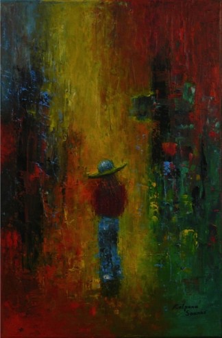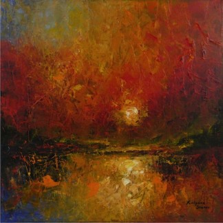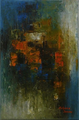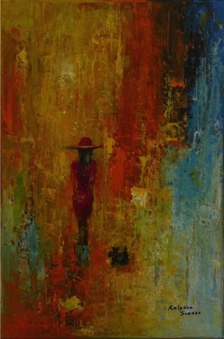 Kalpana Soanes spent her childhood sketching pictures in the sand on the shores of East Africa. However, this simple existence was short-lived. Her flamboyant style had begun to draw crowds. Naturally, she took commissions. Not for money, just cake, or simply, compliments. She developed her skills every single day, experimented with new techniques and frequently sketched pictures in public. Spurred on by the interest it generated, Kalpana started selling her artwork at a very young age. She liaised with local businesses and soon her work was scattered all over the world. Next, she enjoyed an exciting career in Information Technology, worked and lived in different countries in Europe and abroad for several years. However, something was not right. She missed the good old days. Eventually, her inner artist broke free of corporate serfdom. Now based in a quaint British village, Kalpana is a full-time artist. Her work involves acrylics and oils on canvas, often accentuated with mixed media. Kalpana is self-taught.