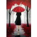 Description: An original Acrylic painting by Aisha Haider on a 1.50” deep box canvas. The painting conveys a stunning painting that will look amazing on any wall. A lady walks through the enchanted looking red woods underneath her umbrella. Various shades of greys highlight the distant trees and works beautiful with the redness of the umbrella and the leaves spread across the forest. Two black trees on each side of the woman work beautifully with the blackness of her flowing coat. This painting continues over the sides and may be hung without a frame. The painting has been varnished with gloss for protection and is signed in the corner by the artist. The painting has also been wired at the back of the canvas for instant hanging. This artwork is on a high quality canvas. The painting will be carefully packed into a custom made box and dispatched within 2 working days by a trackable courier. Delivery outside the UK will be made within a week. Comes with a certificate of authenticity.