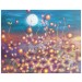 Description: An original mixed media painting by Sarah Oyetunde - Abstract Organics on a 2” deep box canvas. The painting conveys a sense of mystery and latent curiosity, as the full moon rises above the water we view it from a distance amongst the surrounding foliage.