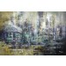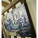 Description: An original painting by Kalpana Soanes. Moonlit Metropolis, an extra large abstract in purple, green and