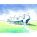 Description: An original painting by Ann Priddy framed in a white wooden frame. This painting depicts one of the quirky house boats on the Norfolk Coast which is reminiscent of Peggotty's home in the Charles Dickens novel, David Copperfield.