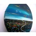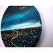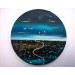 Description: An original acrylic painting by Maria Luisa Azzini on a round canvas, one of a kind. The painting is about an imaginary city from another reality at night time.