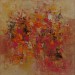 Description: An original painting by Kalpana Soanes. An abstract in vibrant shades. Shades Of Benevolence. Warm colours on chunky canvas. Attractive texture. An uplifting artwork in pink and yellow. Sides finished in black, ready to hang, no need for a frame.