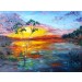 Description: An original oil painting by Mary Ann Day on a 1” deep box canvas. The painting conveys the glowing light of the setting sun shimmering on the dark blue water, as dusk descends.