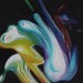 Description:  An original oil painting by Penelope Cake on a 1.5” deep box canvas. The painting conveys an abstract composition from combining the ethereal nature of light, shape and colour on a computer screen, with painting practices.