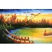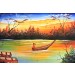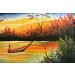 Description: An original oil painting by Fatiya Namugaya on canvas. This item will be supplied as a rolled canvas and requires mounting onto canvas frame stetchers. The painting depicts a fisherman out on a boat on the river Nile as the sun sets.