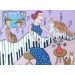 Description: An original acrylic and mixed media painting by Artist Casiimira Mostyn on a 1” deep box canvas. The painting is painted in a naïve style depicting an eccentric woman surrounded by her cats playing the piano.