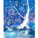 Description: An original watercolour and acrylic painting by Ann Priddy framed in a natural wooden frame. The Willow sits on the bank in the moonlight, watching over the fireflies and fish as the night begins to fall.